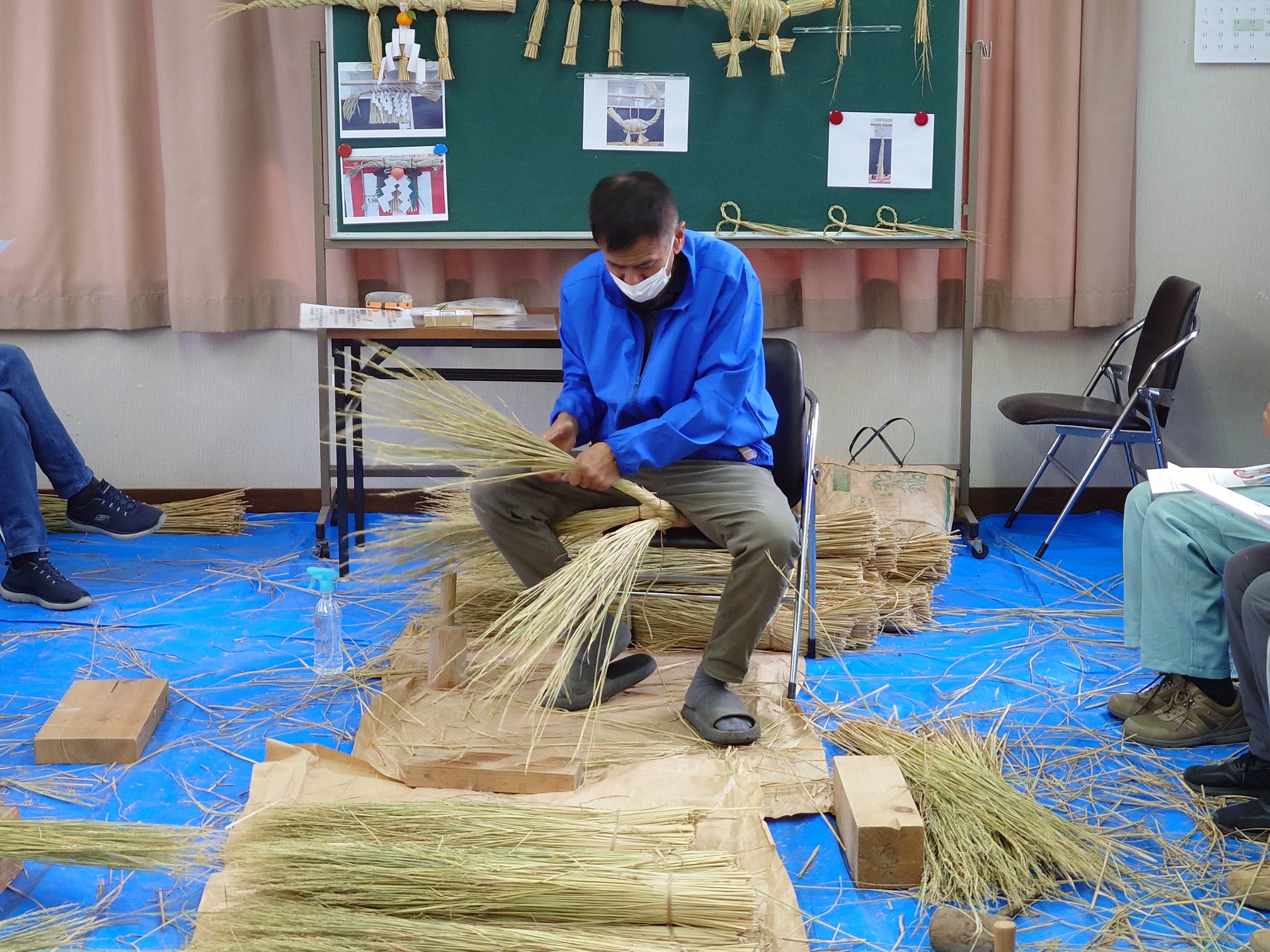 縄を編む力作業にも熱心に取り組まれ、時間が経つのも忘れるほどでした。